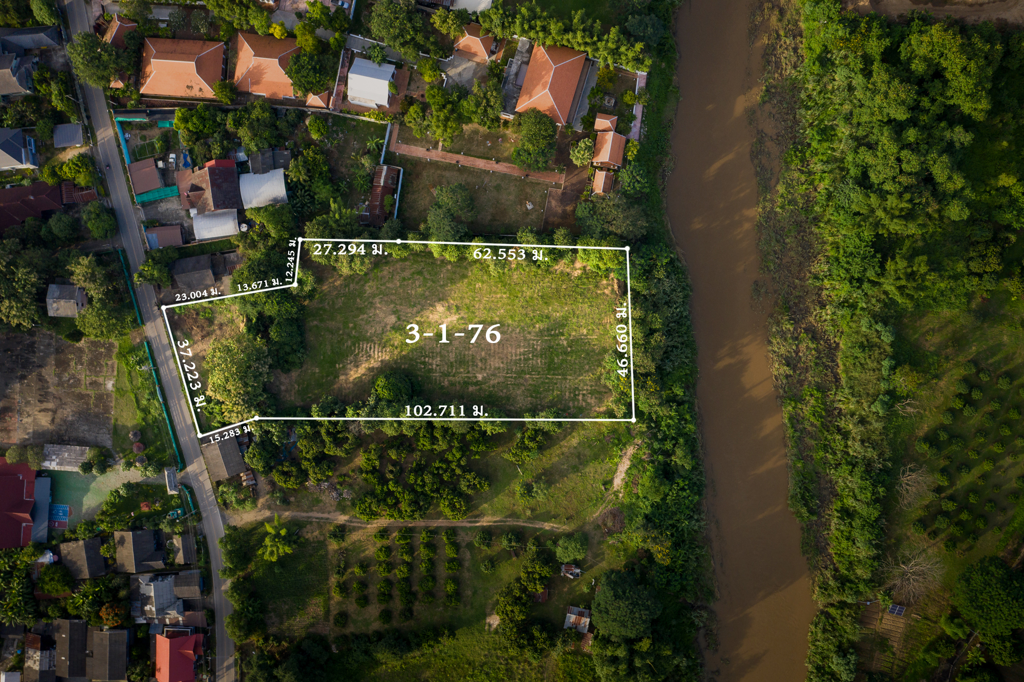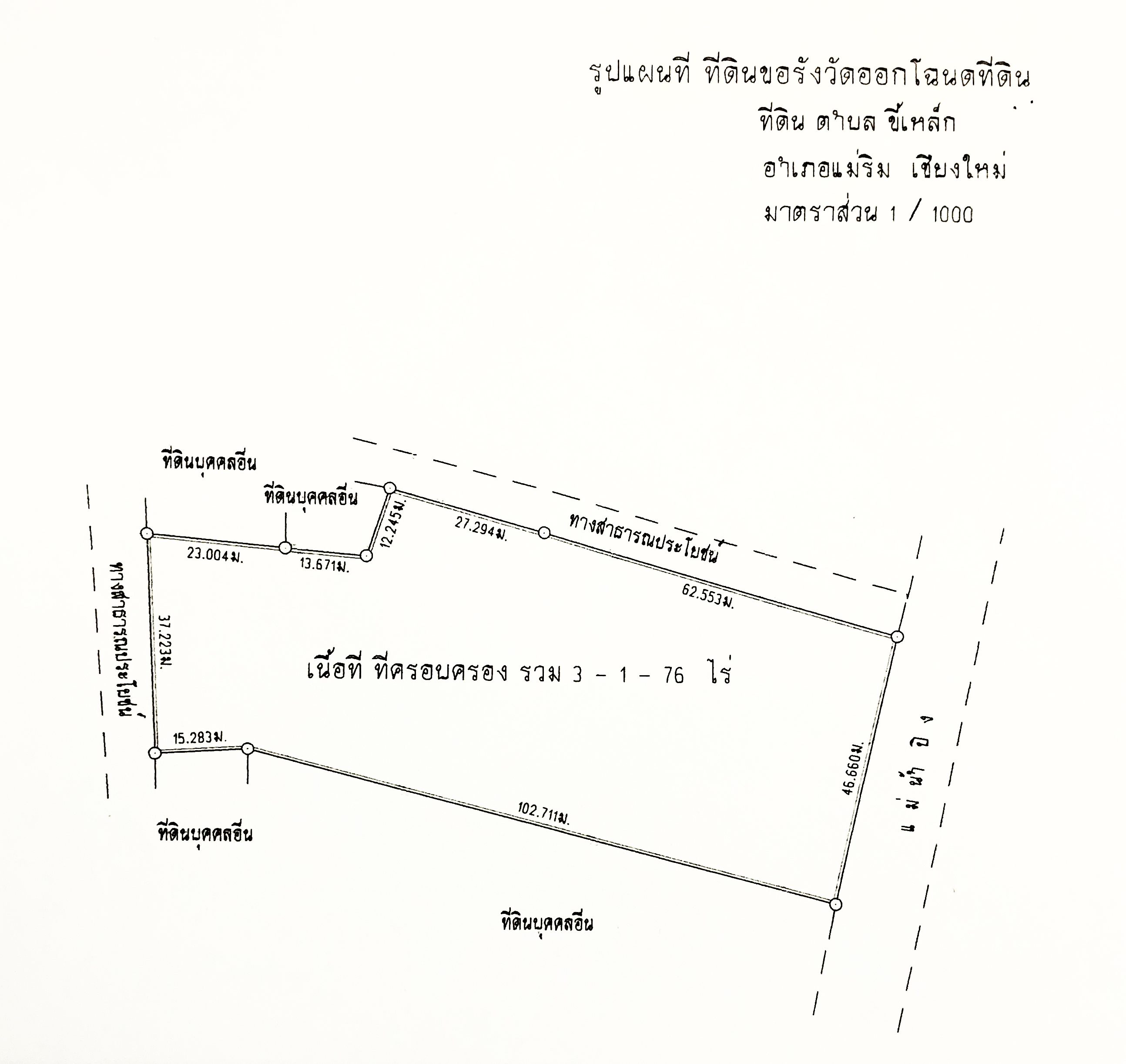 เนื้อที่ครอบครอง : 3 ไร่ 1 งาน 76 ตรว. ( เอกสารเป็น นส.3ก เกือบ 2 ไร่)
