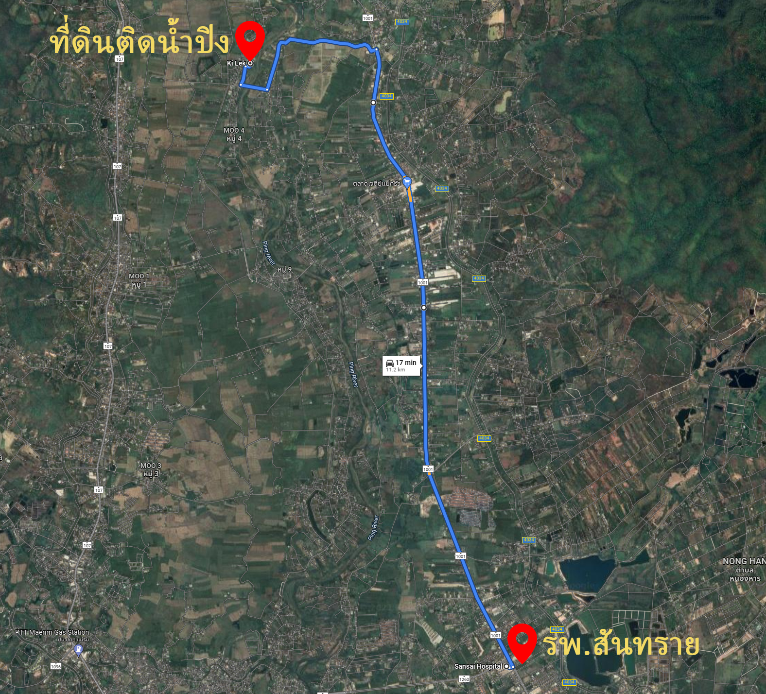 จากตัวเมือง 20 กว่ากิโล อยู่ตำบลขี้เหล็ก อำเภอแม่ริม เชียงใหม่